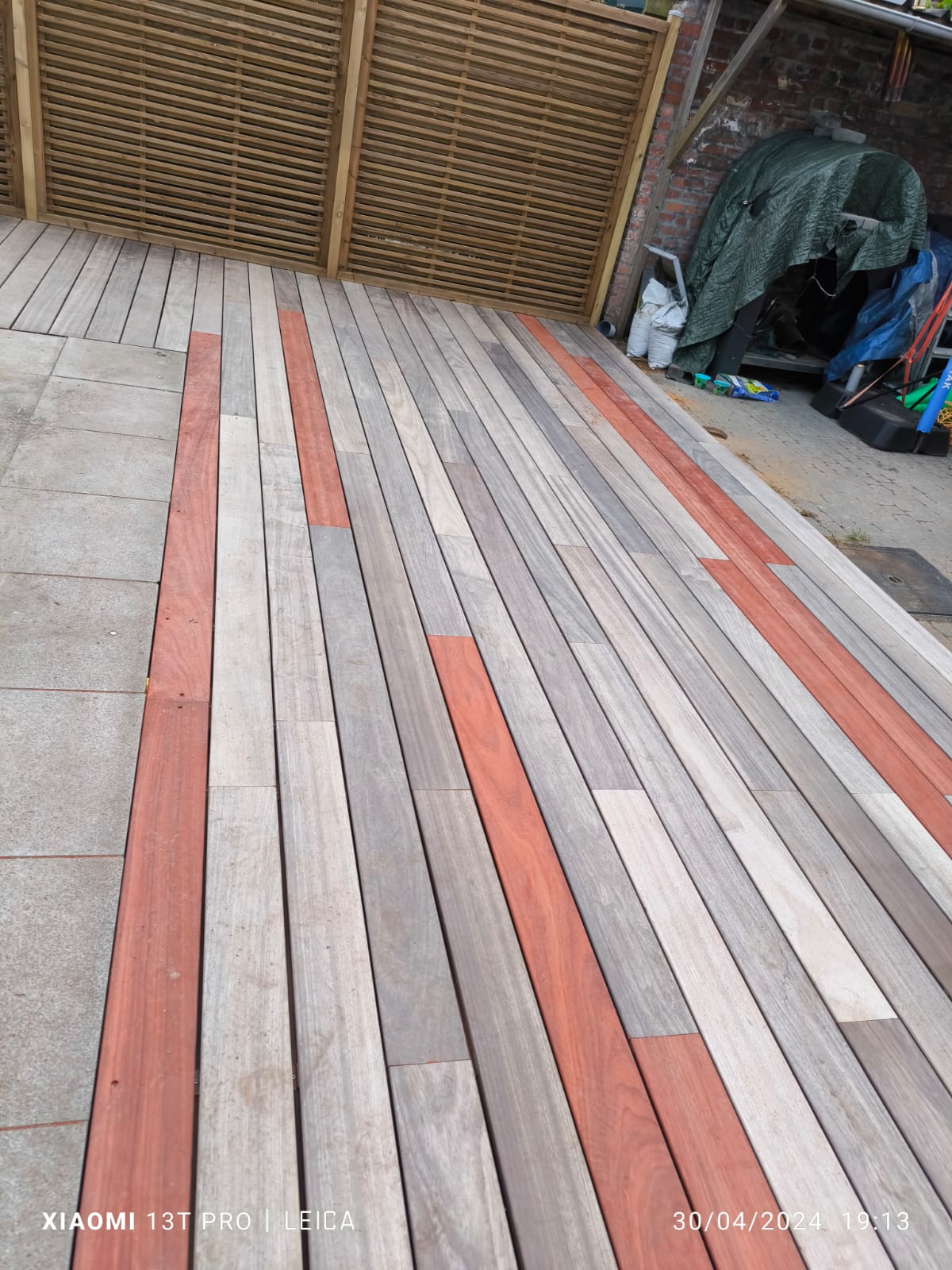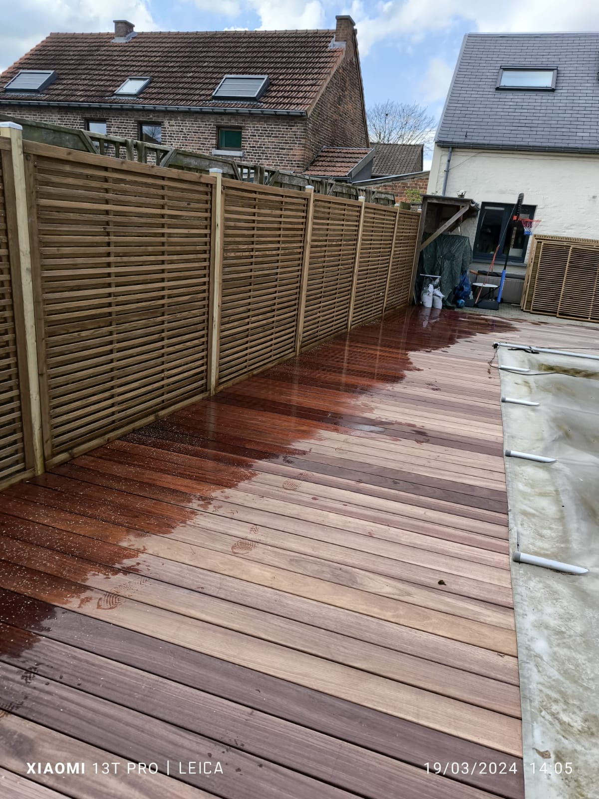 Terrasses en bois, pergolas, clôtures, allées pavées.